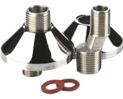 S-Koppelingen 1/2″ BU X 3/8″ BU Met Sprong En Rozetten 2 Stuks