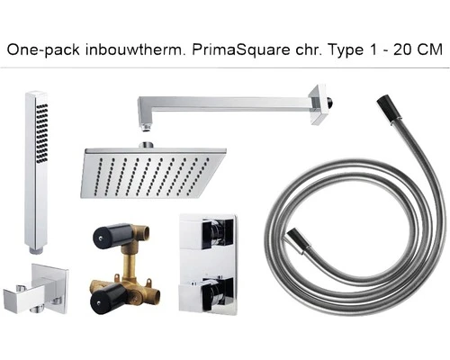 Complete Inbouw Doucheset One-pack Prima Square 20 Cm Vierkant Chroom – Model 1