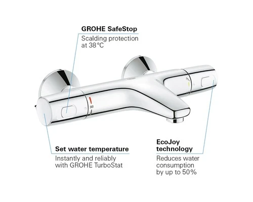 GROHE Bad Thermostaatkraan Met Omsteller En CoolTouch Grotherm 2000 EasyReach Tray 34464001 Chroom