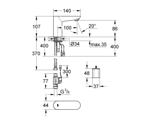 GROHE Elektronische Wastafelkraan Euroeco Cosmopolitan E Met Infraroodsensor 36271000 Chroom