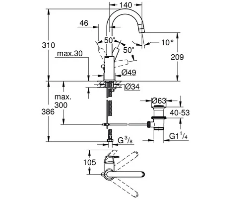 | Variant | Wastafelkraan met ééngreepsmengkraan |