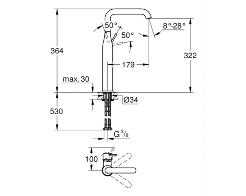| Variant | Wastafelkraan met ééngreepsmengkraan |