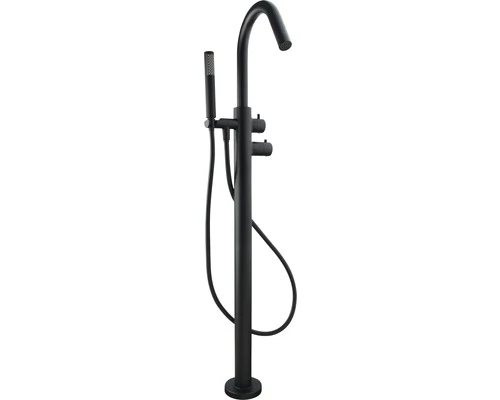 Maak uw (vrijstaande) bad af met een vrijstaande badmengkraan voor een optimale chique uitstraling. Deze vrijstaande badmengkraan komt in de kleur mat-zwart. Door de handige draaiknop op de kraan kunt u eenvoudig wisselen van bad- naar handdouchekraan. Een echte aanwinst voor uw badkamer.
